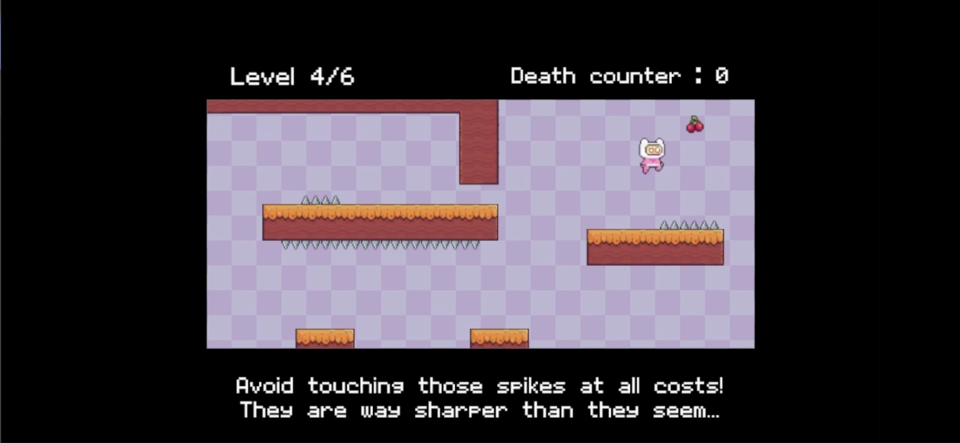 Measure your platforming skills clearing these 6 short levels in the fewest number of attempts! But most importantly, just have fun !